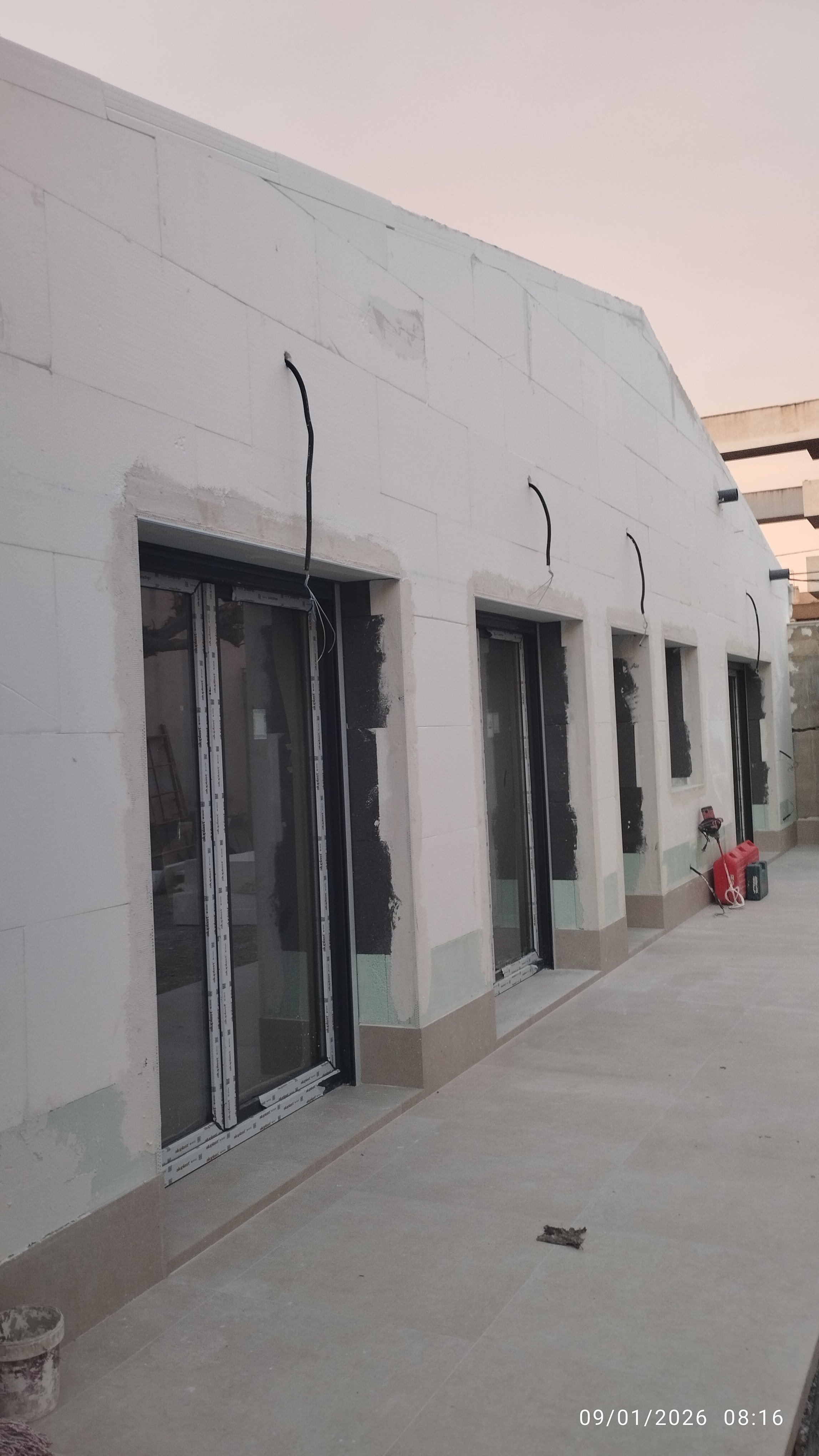 Vamos terminando la instalación de SATE (Aislamiento por el exterior) en el cambio de uso de garaje a vivienda, que estamos realizando en el municipio de Almoradí.